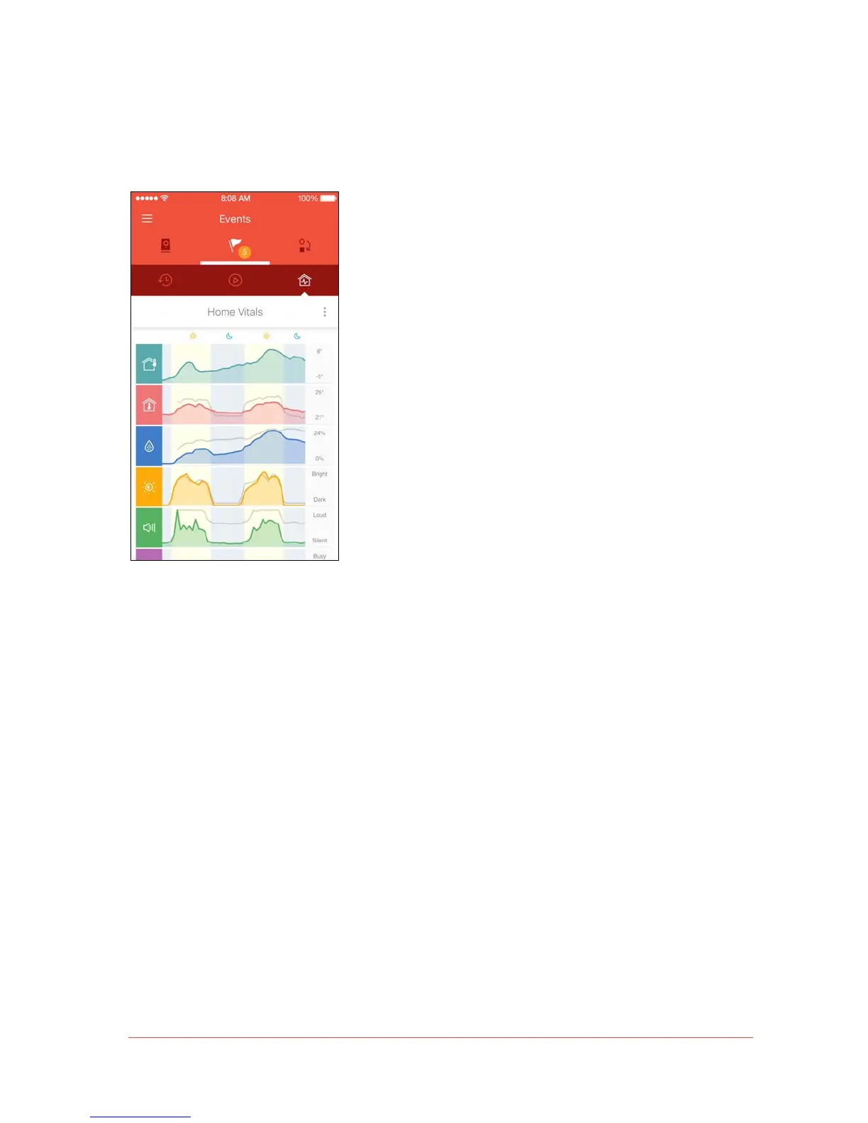 The rightmost section in the Events tab is the Home Vitals screen. Here, users can monitor
