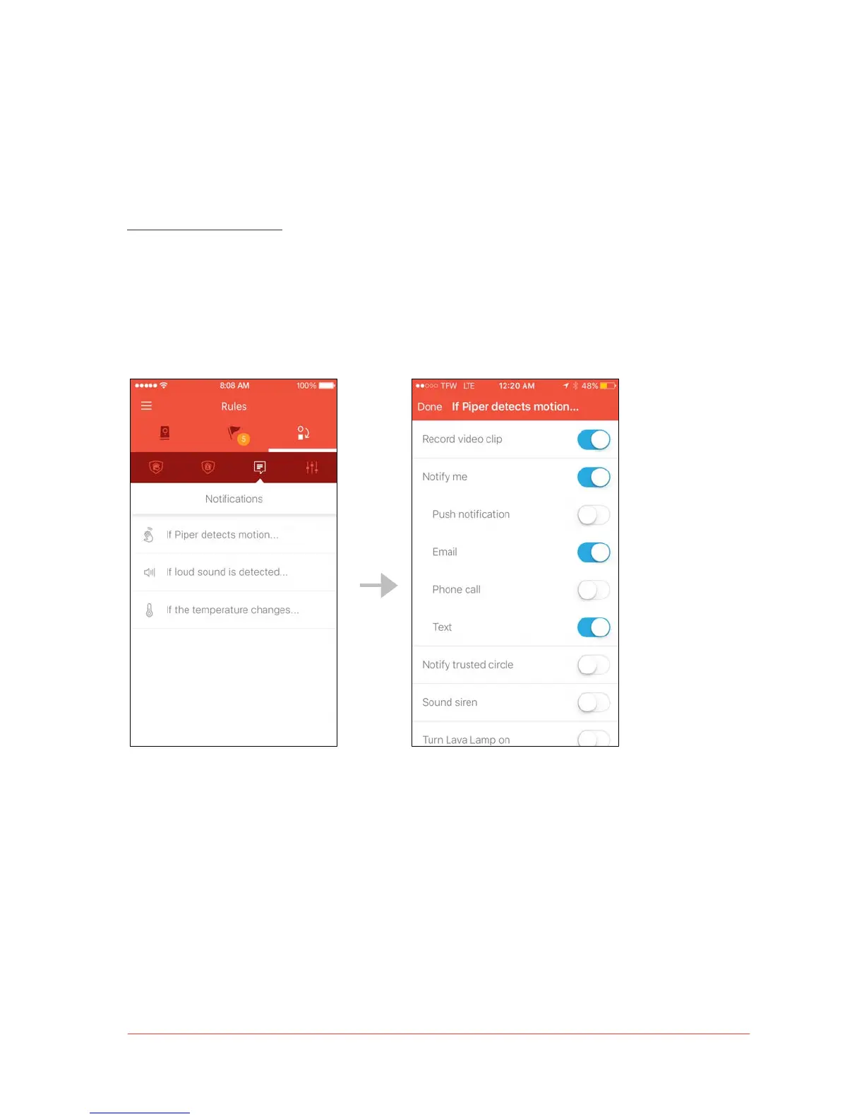 mode Piper is in. You can choose to receive this notification directly to the mobile app (via