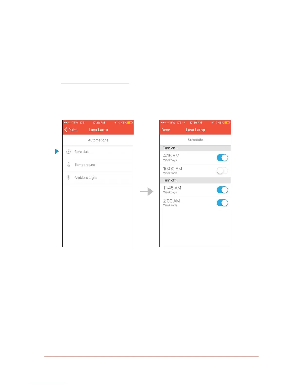 1. Enable "turn on" and "turn off" times by toggling the schedule you wish to set.