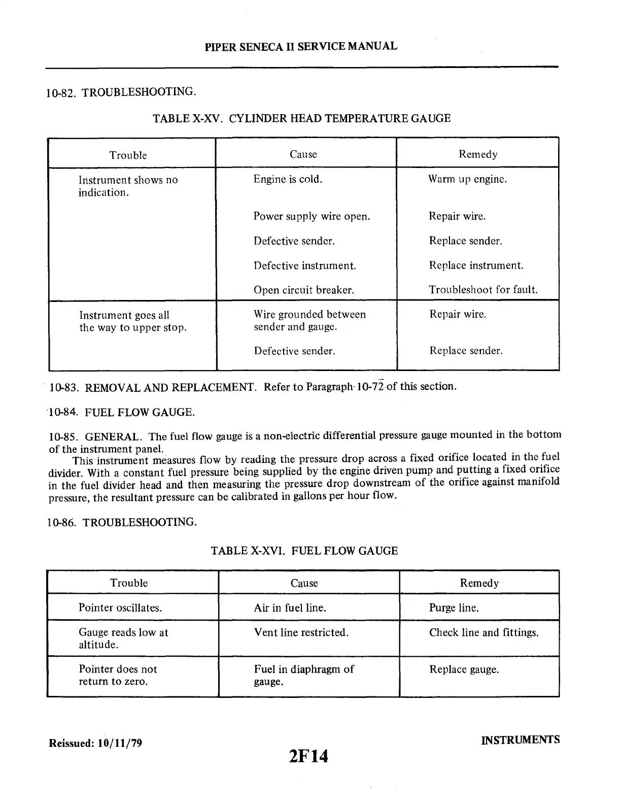 TABLE X-XV. CYLINDER HEAD TEMPERATURE GAUGE