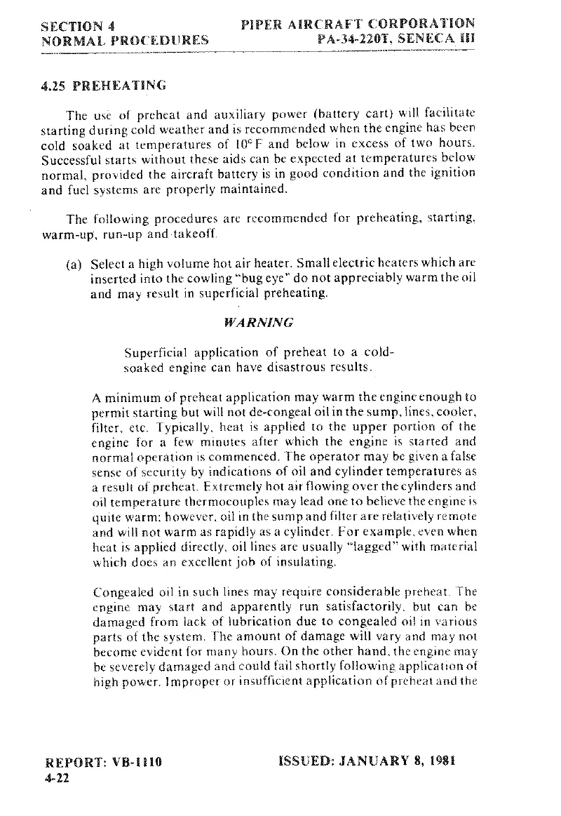 Piper SENECA III - Preheating