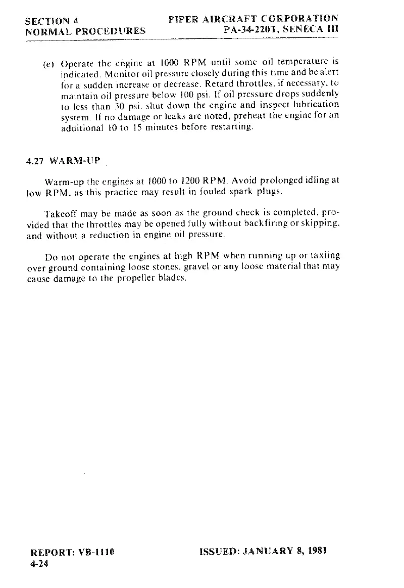 Piper SENECA III - Warm-Up