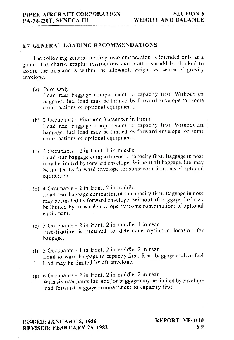 Piper SENECA III - General Loading Recommendations