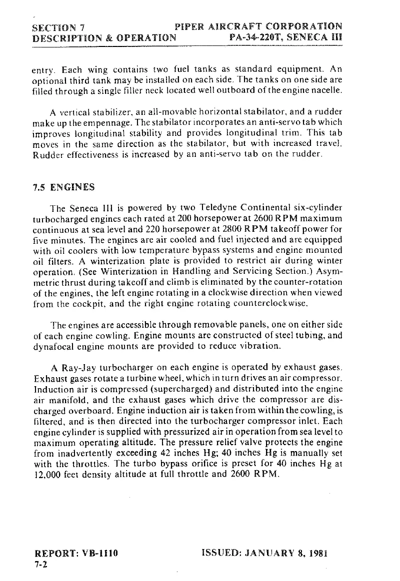 Piper SENECA III - Engines