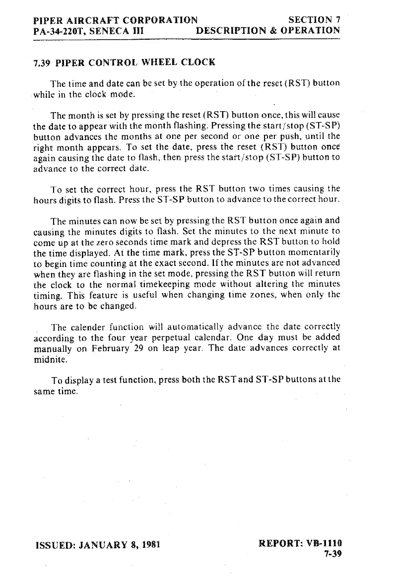 Piper SENECA III - Piper Control Wheel Clock