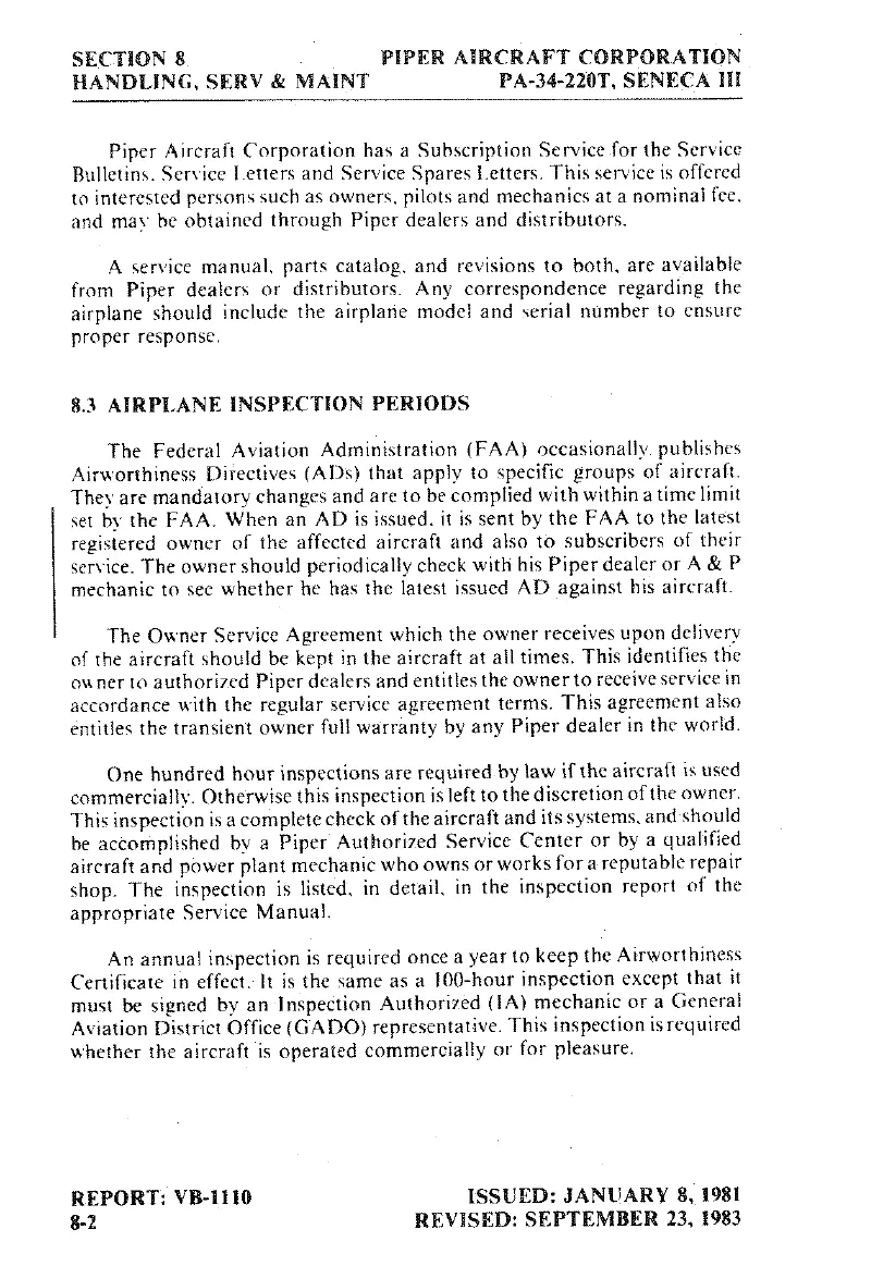 Piper SENECA III - Airplane Inspection Periods