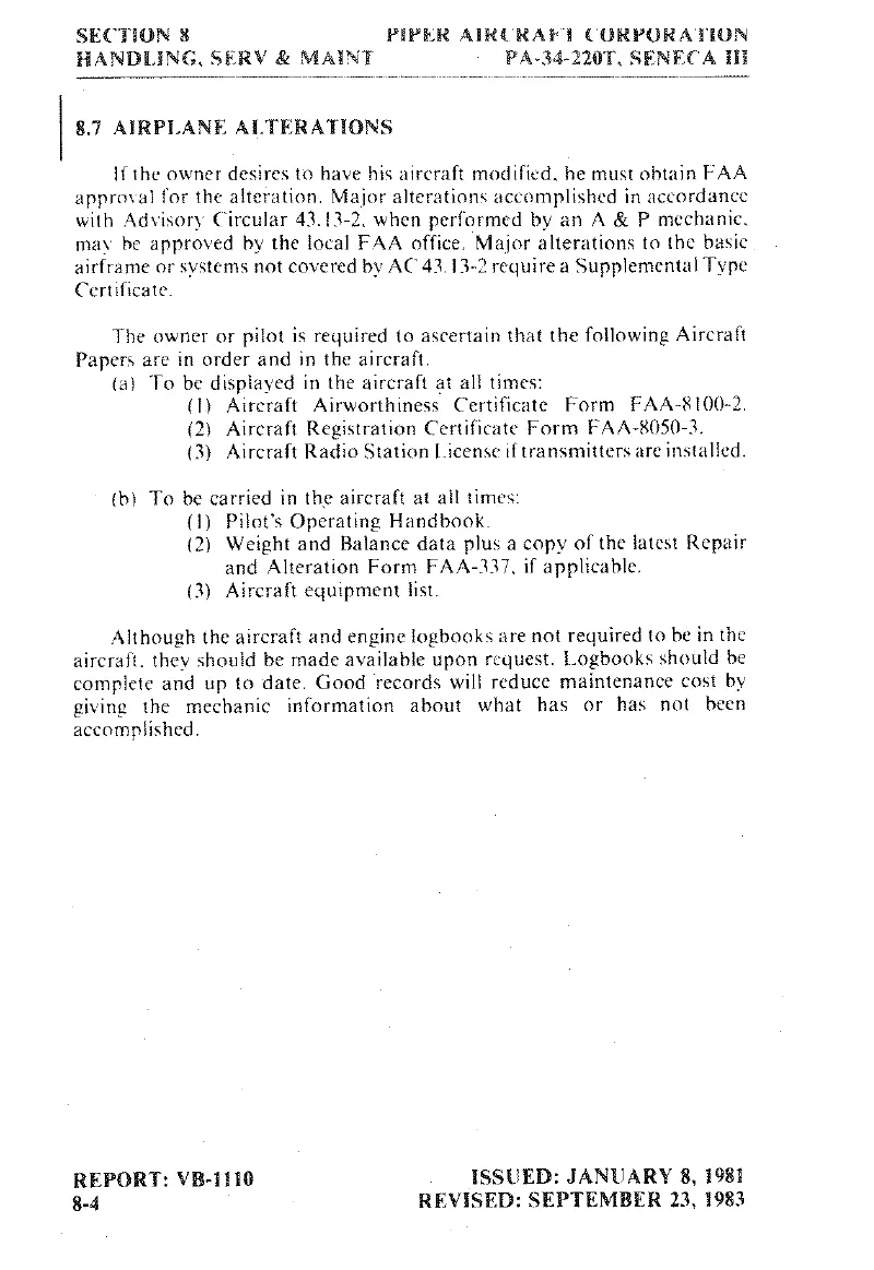 HANDLING, SERV & MAINT PA-34-220T, SENECA
