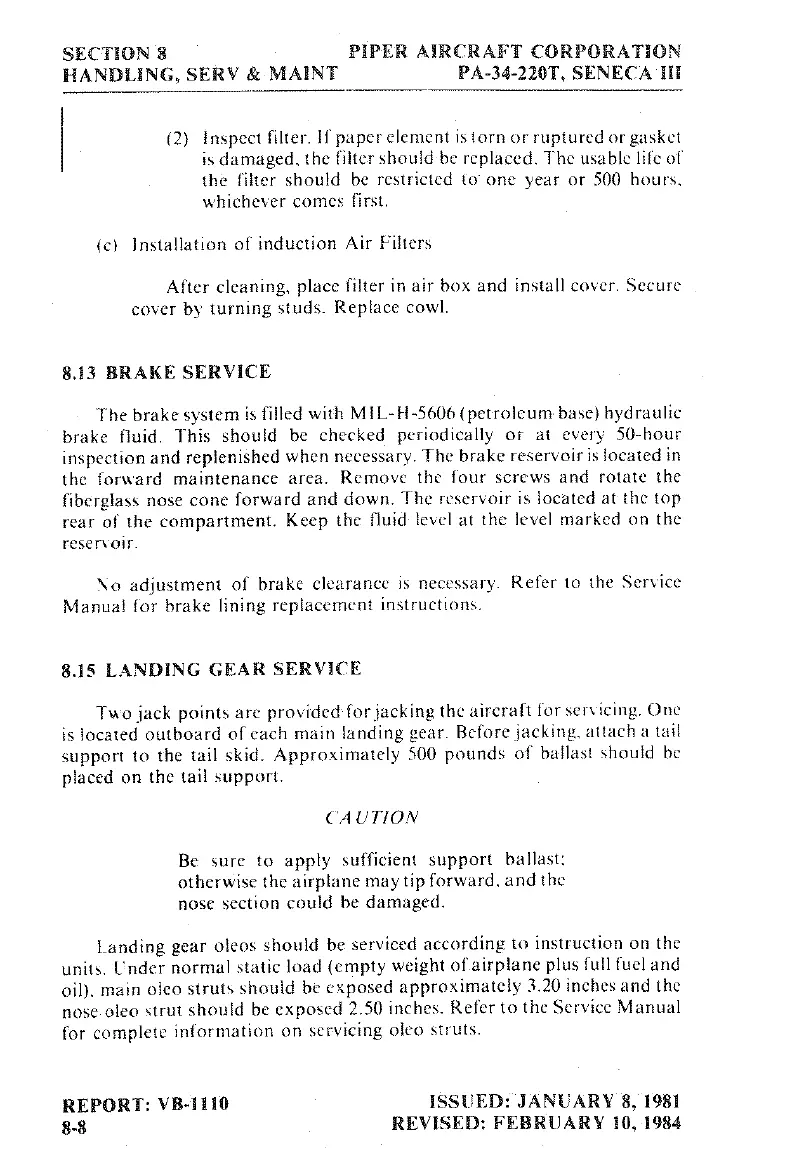 Piper SENECA III - Brake Service; Landing Gear Service