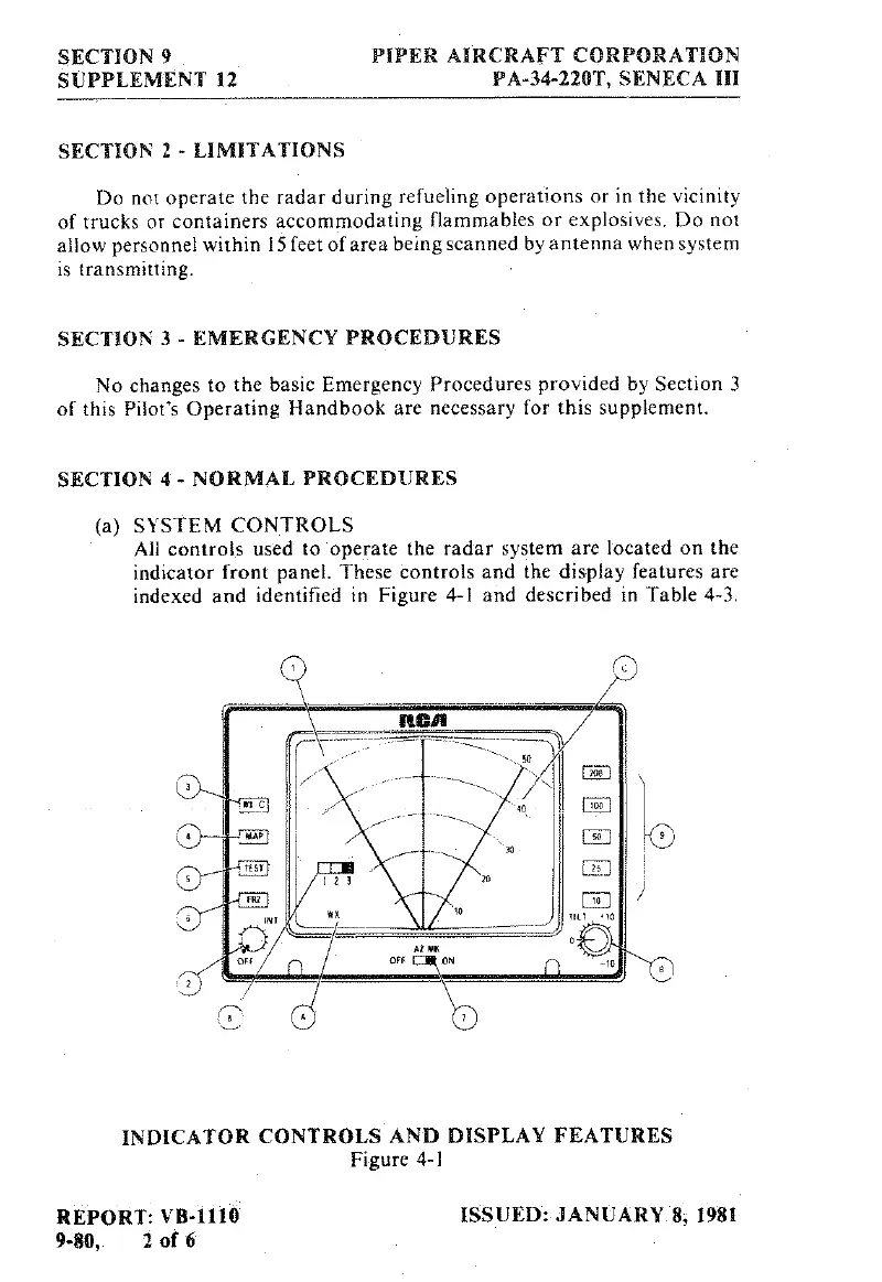 Piper SENECA III - Indicator Controls and Display Features