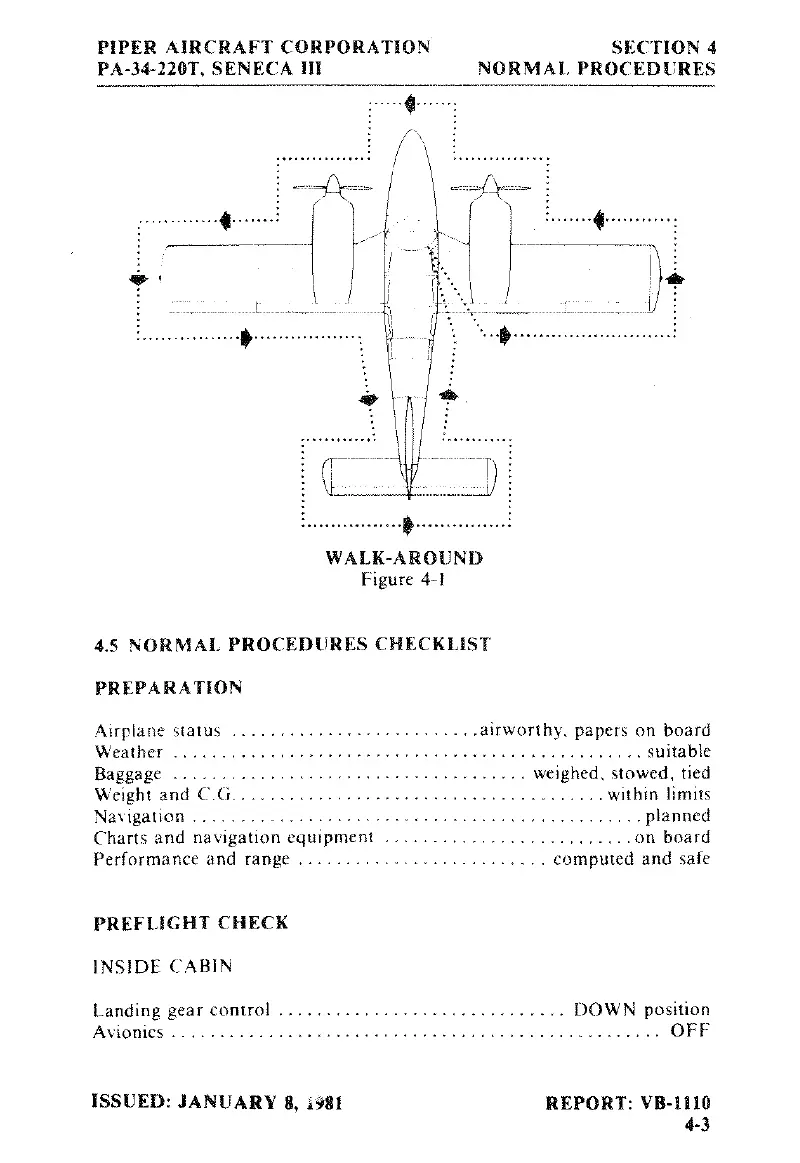 Piper SENECA III - Normal Procedures Checklist; Preparation; Preflight Check; Walk-Around