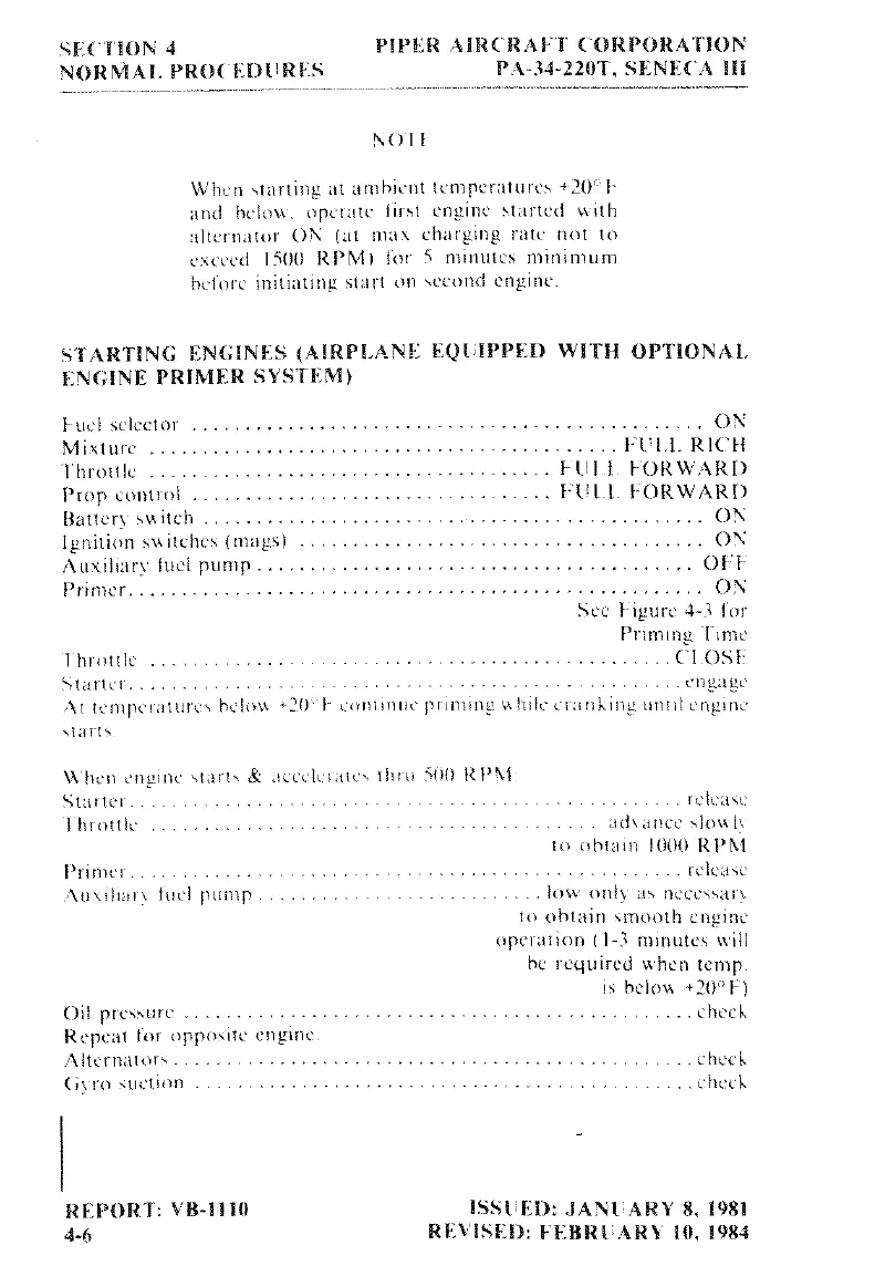 Piper SENECA III - Starting Engines (Airplane Equipped with Optional Engine Primer System)