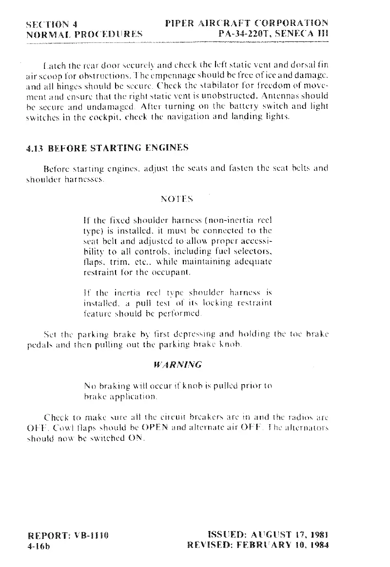 Piper SENECA III - Before Starting Engines