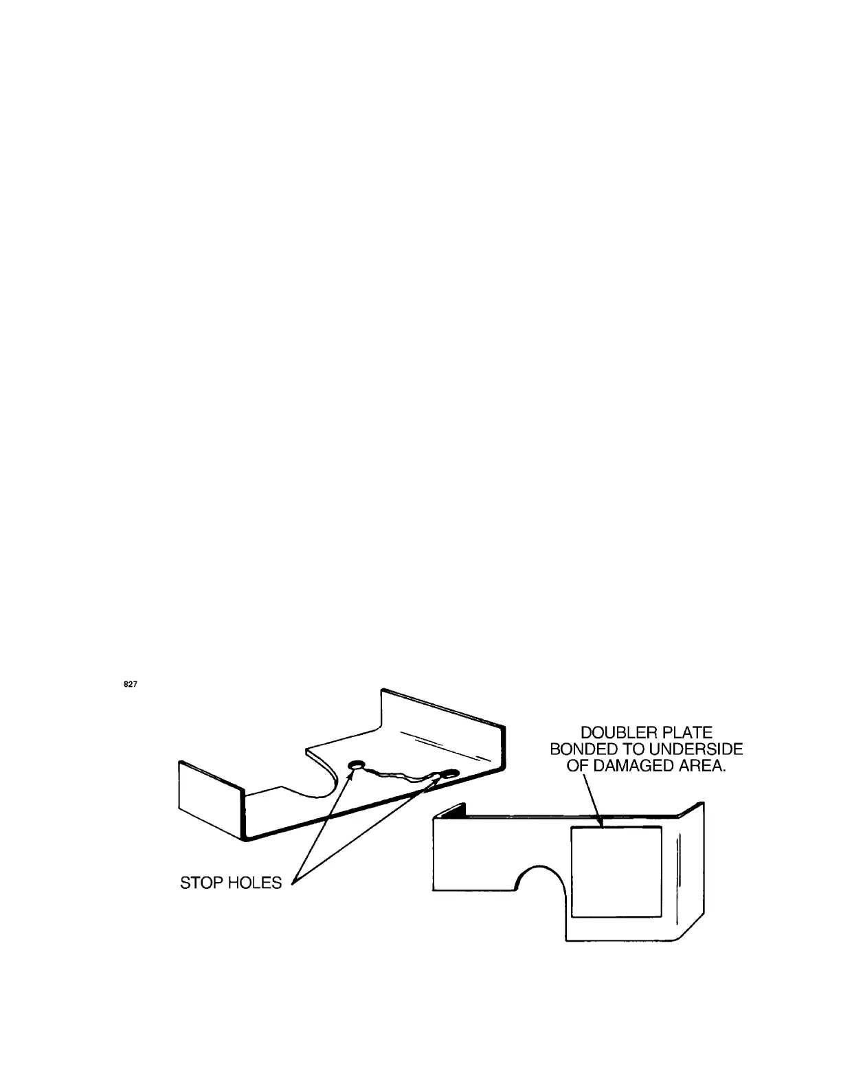 (2) Drill small stop holes at each end of the crack.