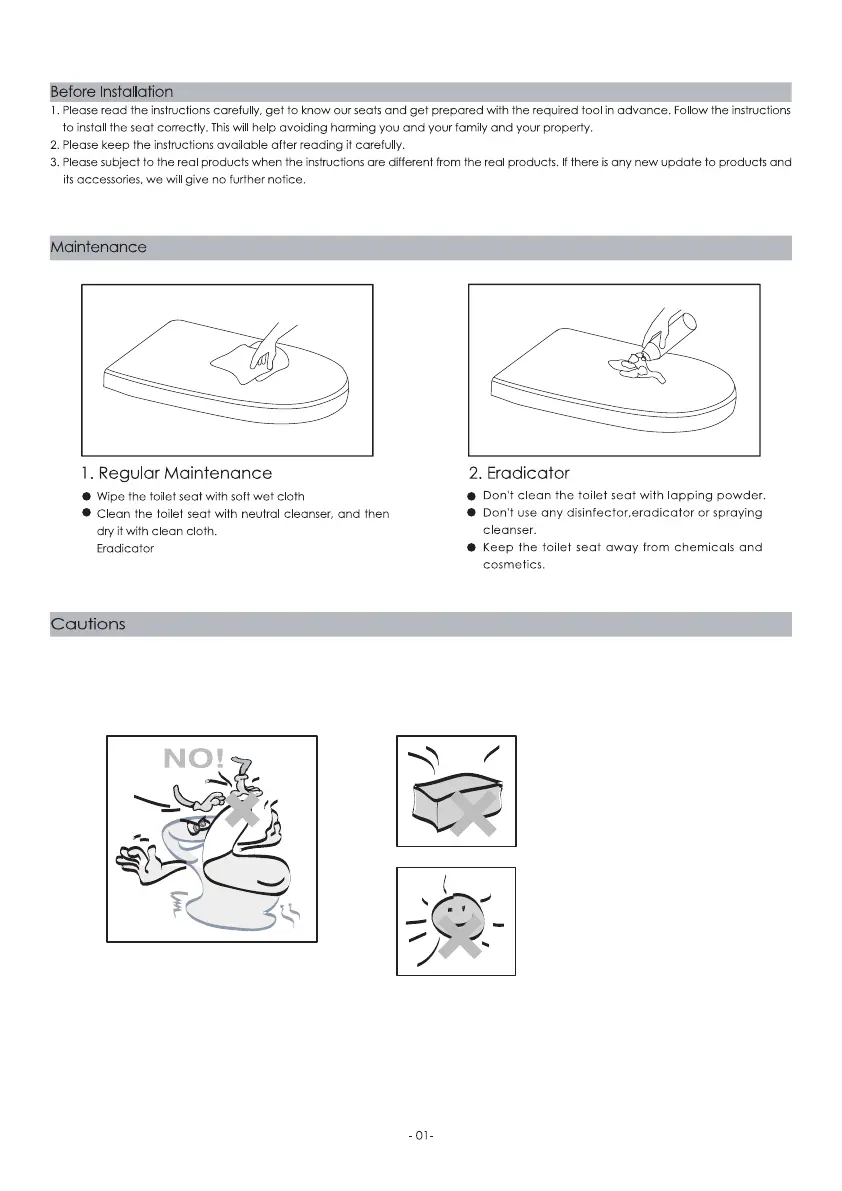 INSTALLATION INSTRUCTION OF TOILET SEAT