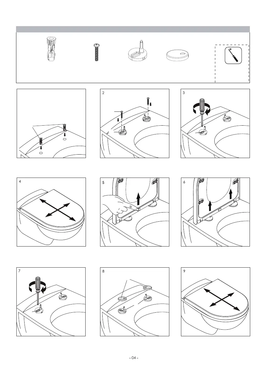 Dübel (A) in die Löcher einsetzen.