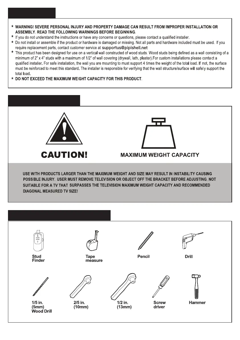 Pipishell PILFK1 - General Warnings and Safety; Crucial Safety and Installation Precautions; Weight Capacity Information; Maximum Load Capacity