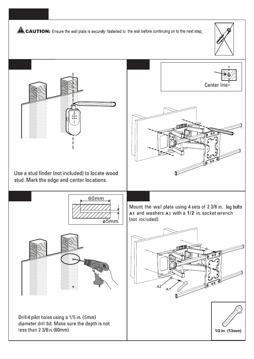Pipishell PILFK1 - Step 4 A: Wall Mounting (Wood Studs); Locate Studs and Mark Wall; Drill Pilot Holes for Mounting; Mount Wall Plate to Studs