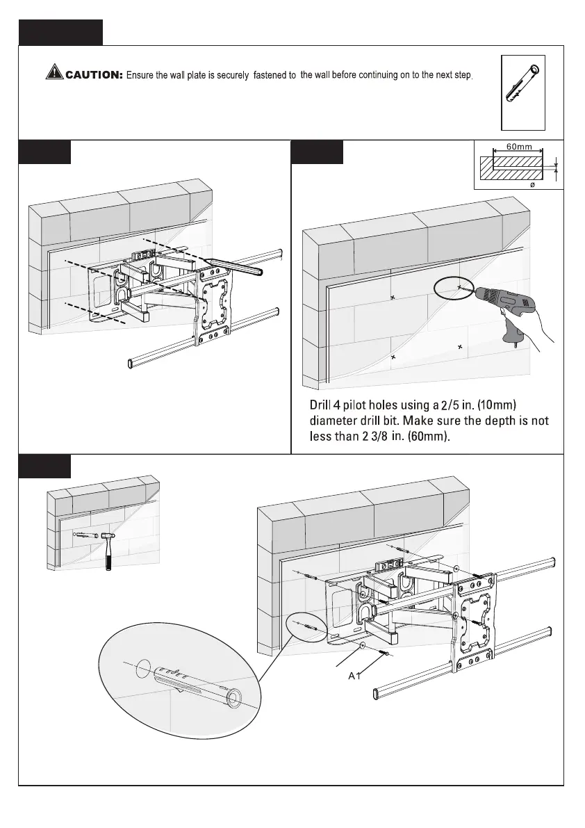 Install wall plate using lag bolts A1, washers A3 and anchor A2. Tighten