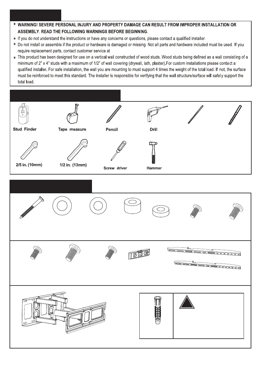 Pipishell PIMFK1 - Product Information and Warnings; General Warnings; Tools Needed (Not Included); Supplied Hardware