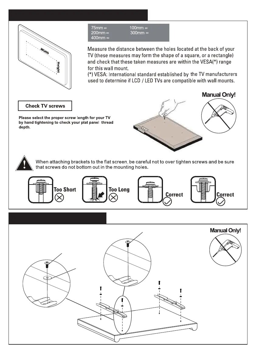Pipishell PIMFK1 - Step 1: TV Bracket Installation Preparation; Verify VESA Compatibility; Select Correct TV Screws; Step 2: Attach TV Brackets to TV