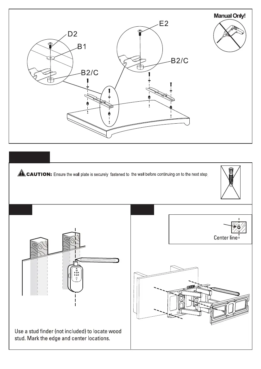 Pipishell PIMFK1 - For Curved TVs; Step 3: Mount Wall Plate to Wall; Installation for Wood Studs