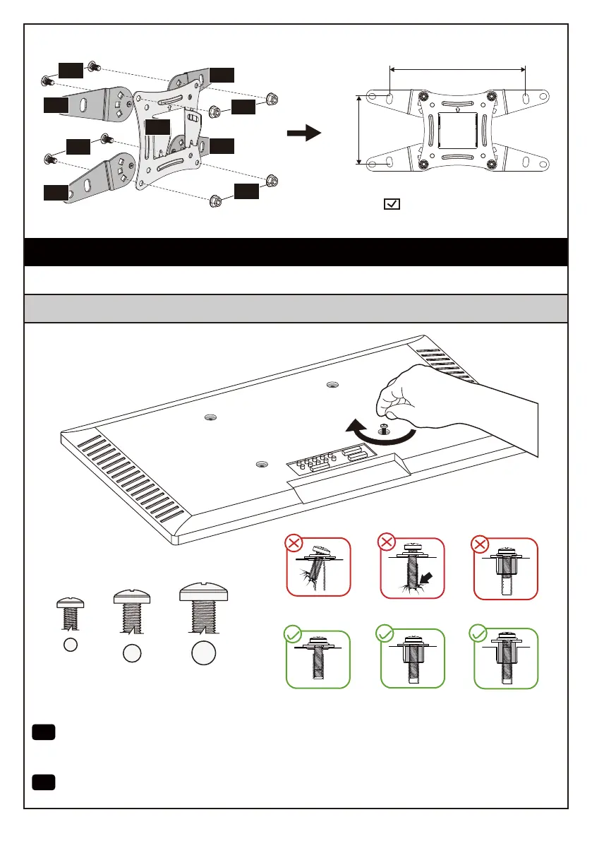 Hand thread bolts into the threaded inserts on the back of your TV to determine which