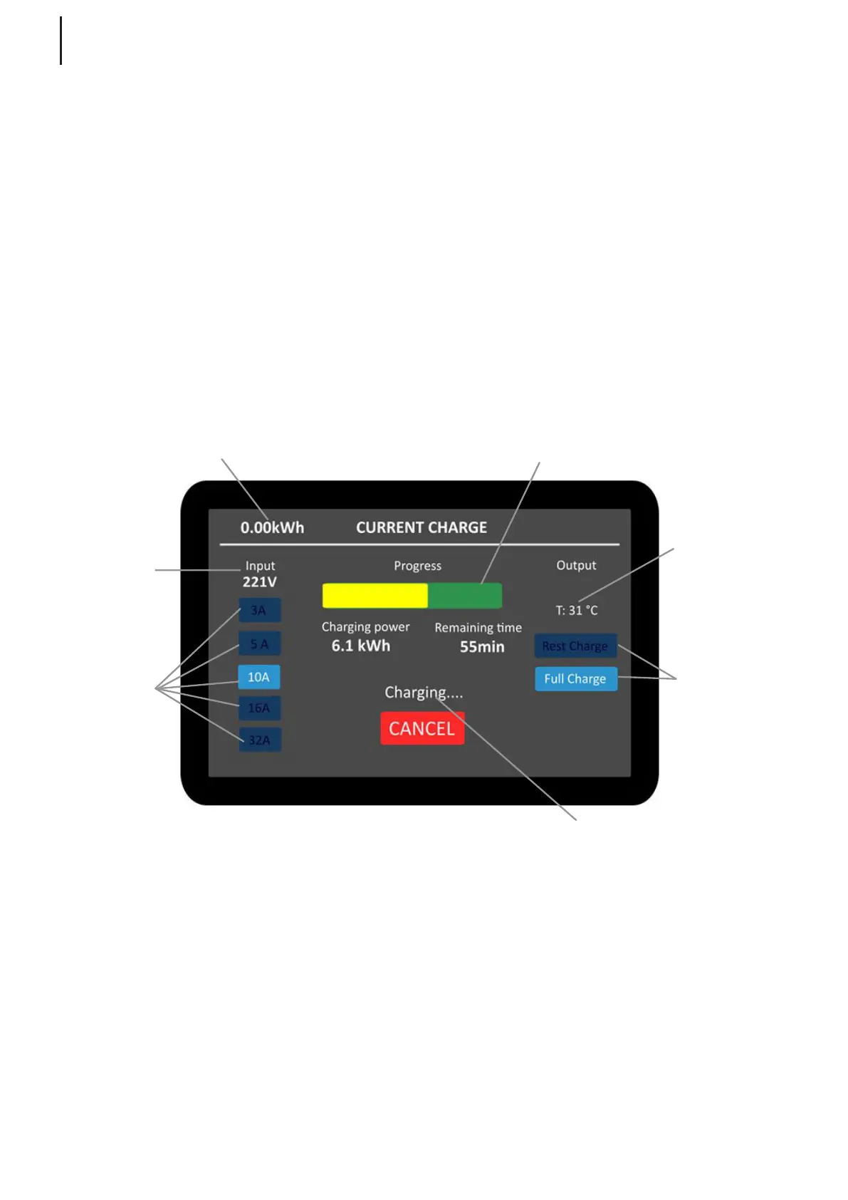 NOTE After charging has started, the “Rest Charge” and “Full Charge” options disappear.