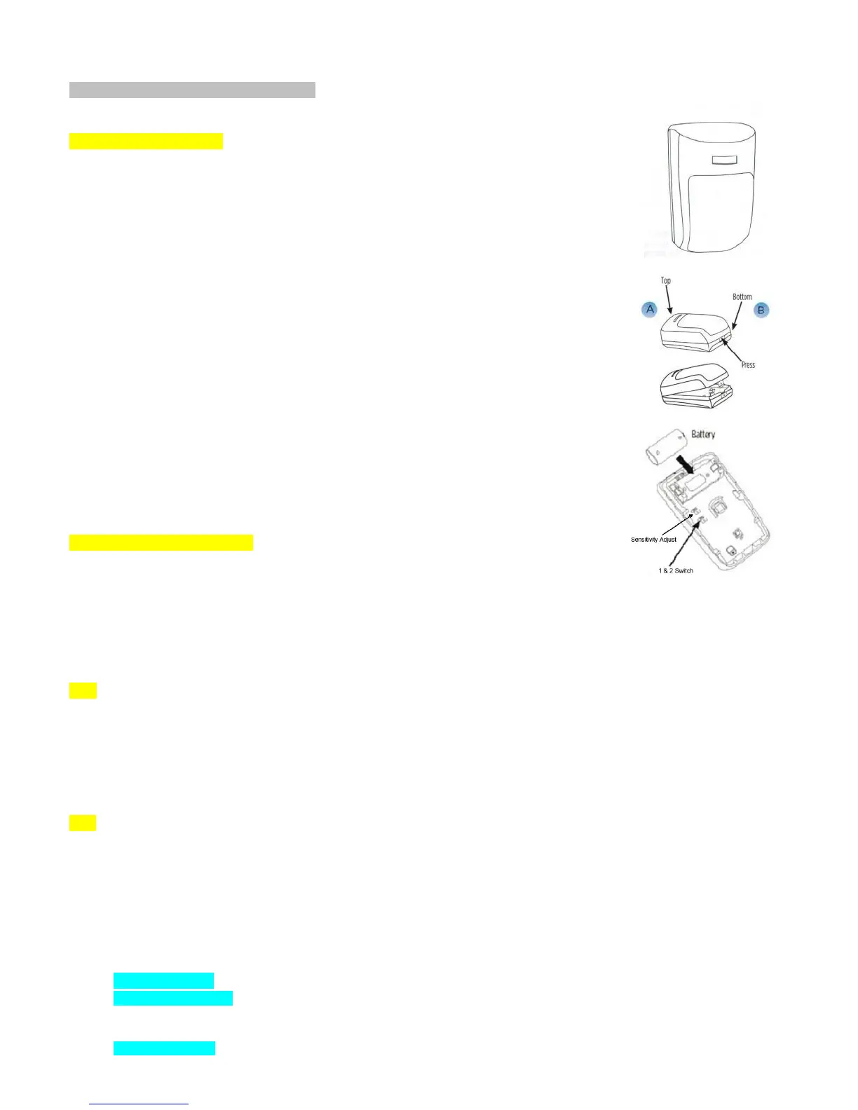 light when the sensor detects an intruder, you can turn it off. When the battery is low, the