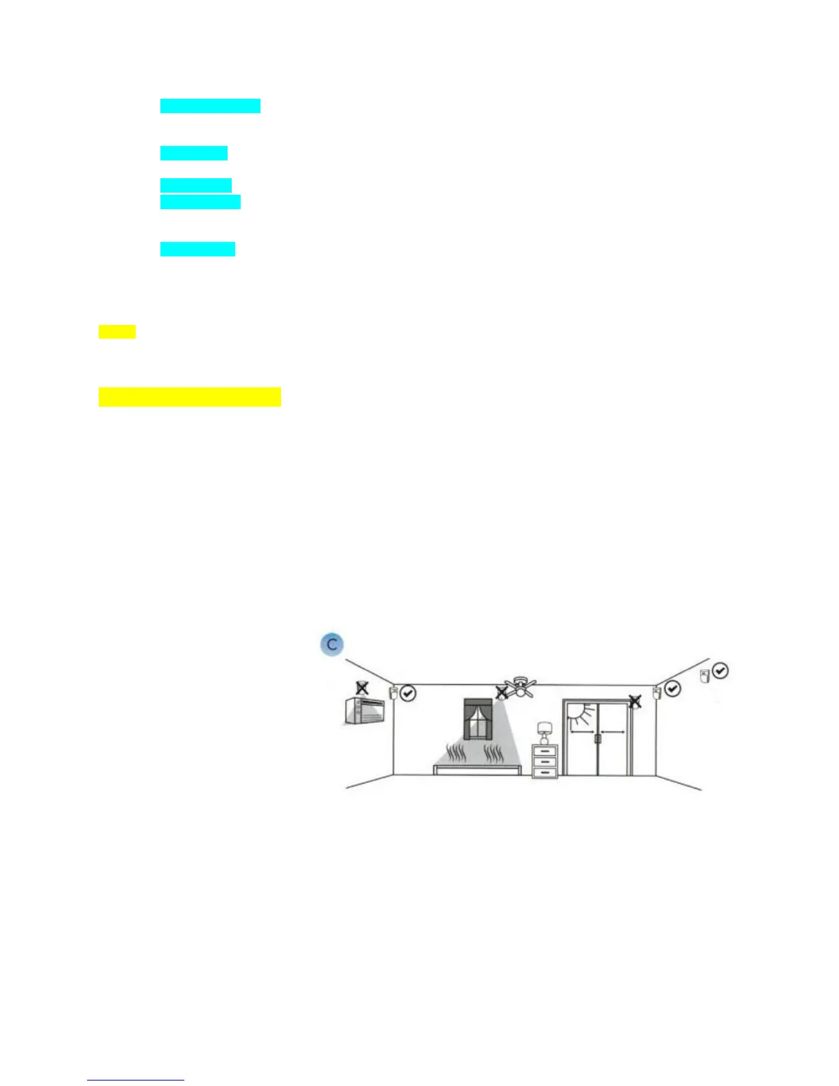 Note2: Motion sensor may be insensitive or give a lot false alarms if the temperature is more