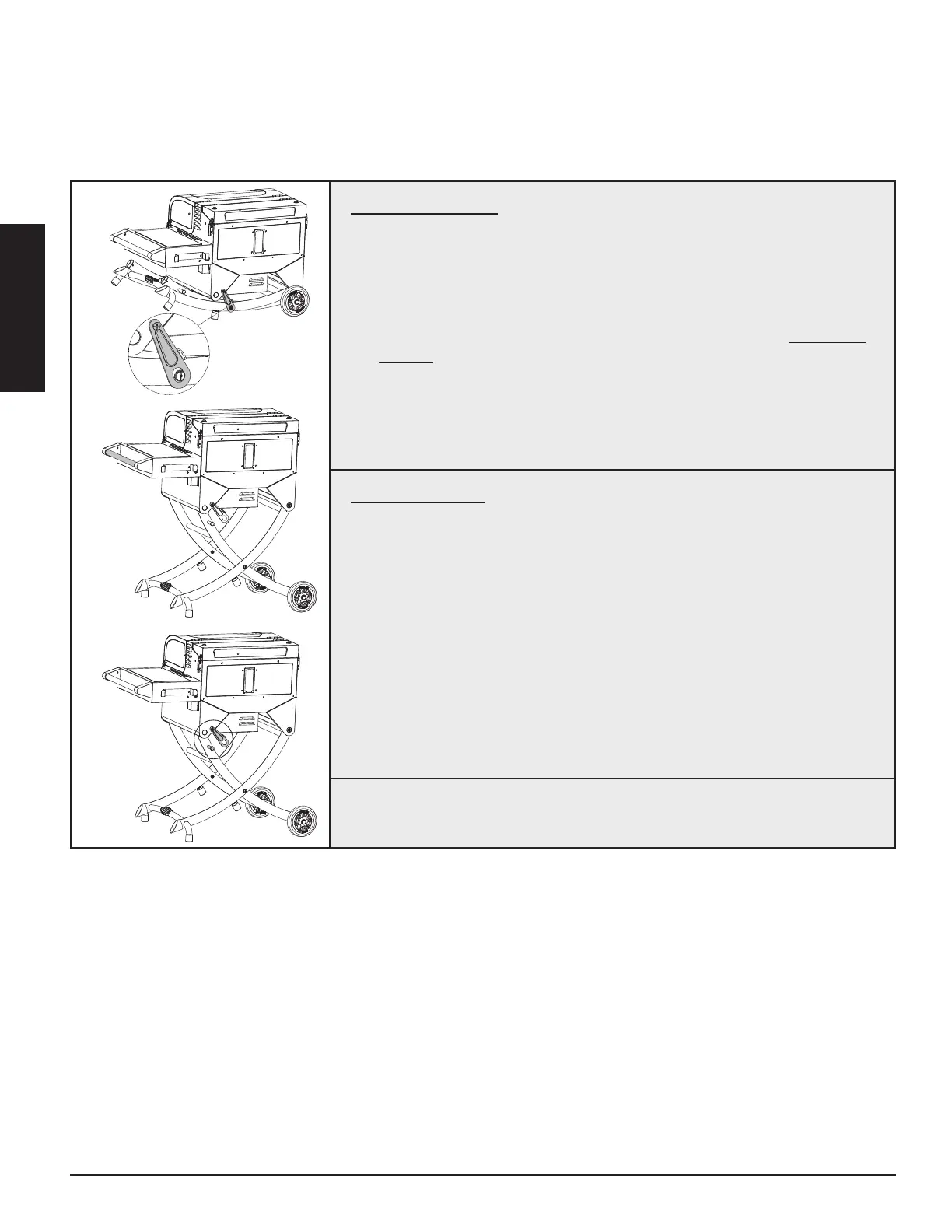 the locking pin of the cart leg. Note illustration C. The grill is now ready for