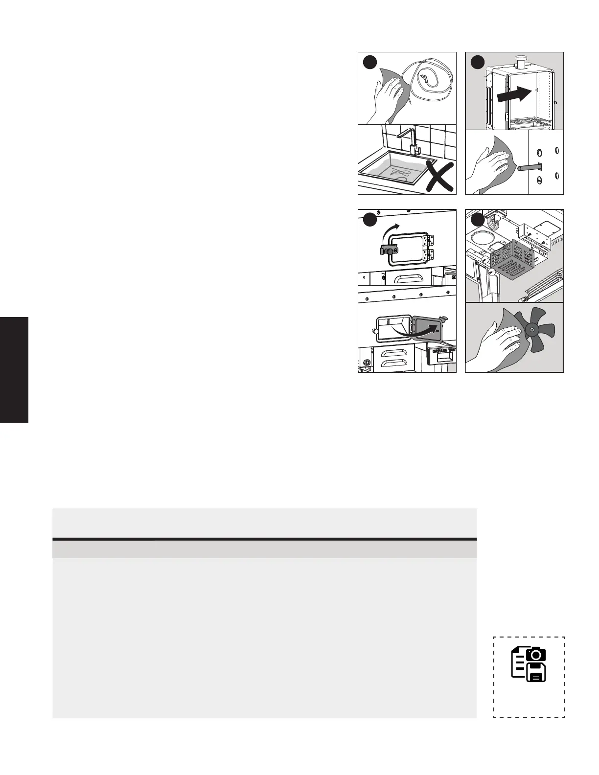Évent d'admission d'air Toutes les 5-6 séances de fumée Dépoussiérer, éponge à gratter & eau savonneuse