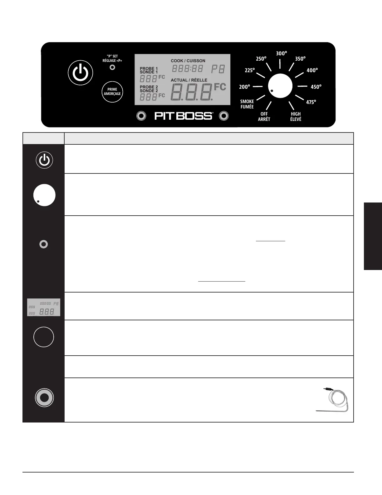 Compatible uniquement avec les sondes de viande de marque Pit Boss®. Sonde(s)