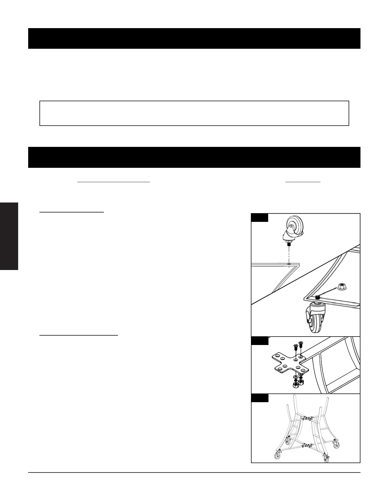 supports par vissage dans le trou. Fixez les roulettes avec les grands écrous.