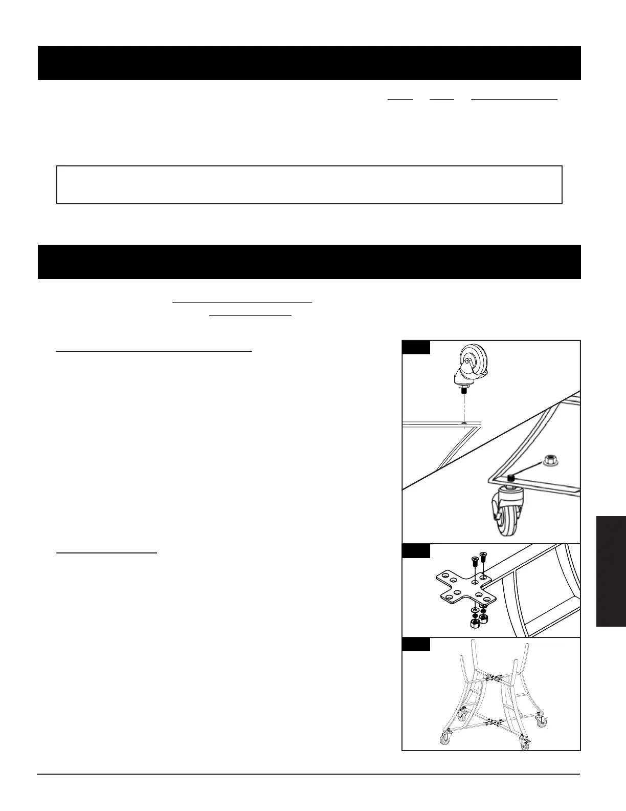 • Coloque los cuatro ruedas giratorias pre-roscado a cada uno de los