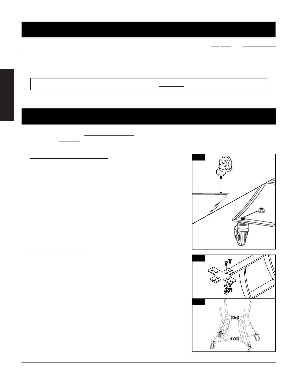 • Attach the four pre-threaded caster wheels to each of the four support