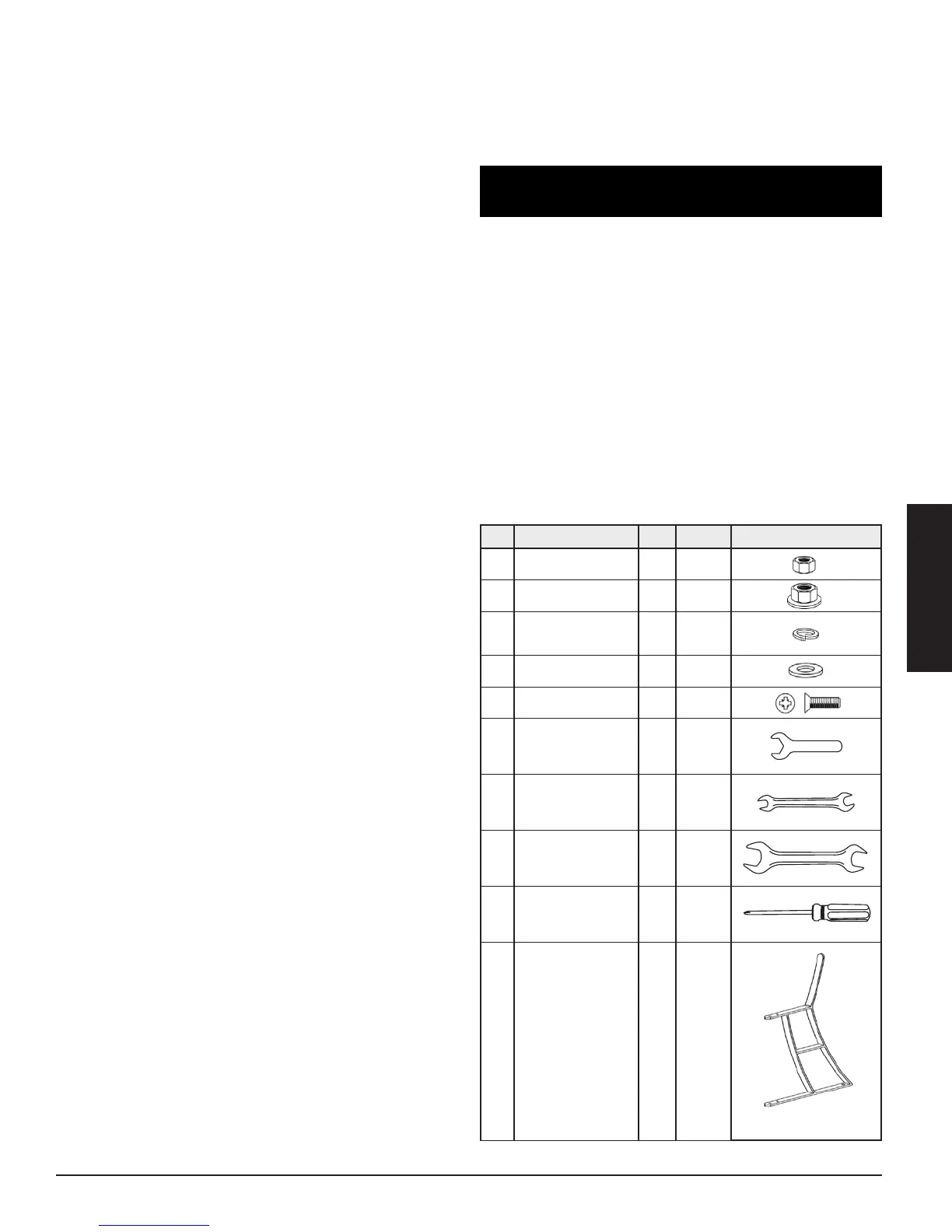 Avant l’assemblage, vérifiez toutes les pièces par rapport à la liste