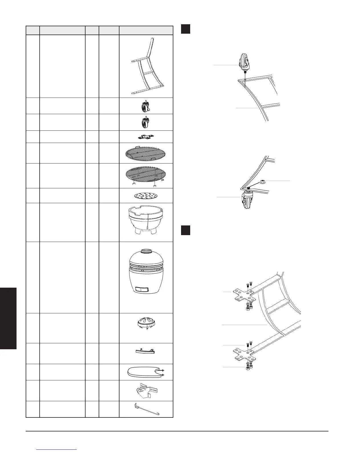 Sujete las ruedas con la tuerca grande (B). Para mantener los soportes