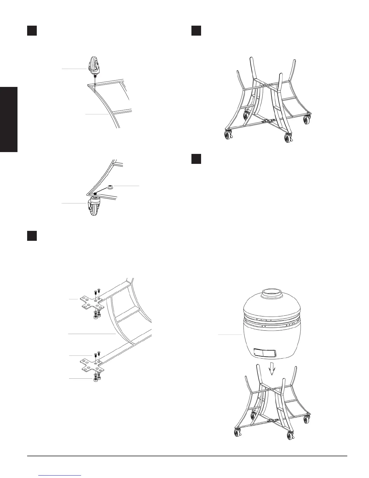 (2) to lock the castor wheels to ensure the ceramic charcoal barbecue