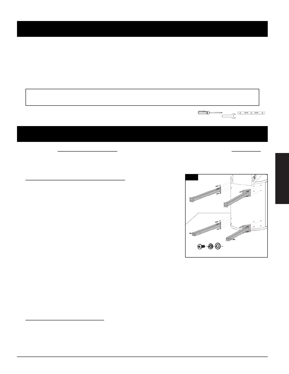 Outils nécessaires pour l'assemblage : tournevis, clé et niveau d'eau.