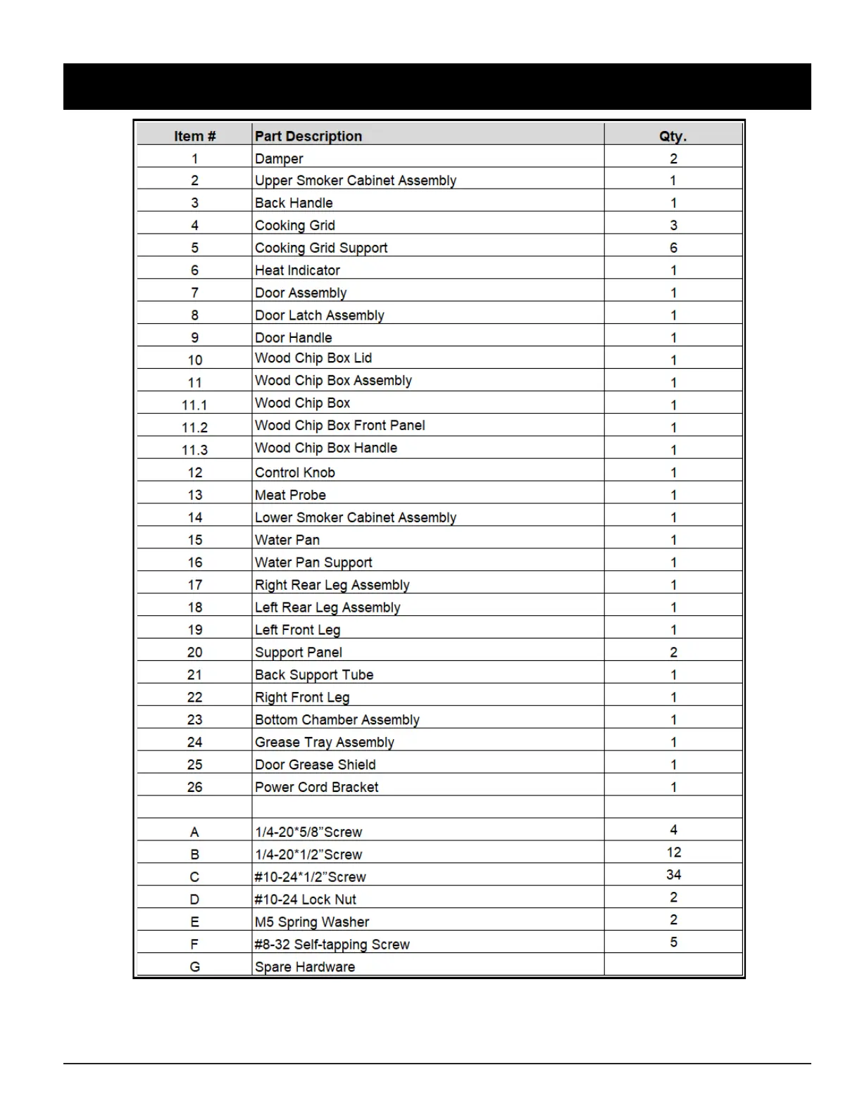 NOTE: Due to ongoing product development, parts are subject to change without notice. Contact Customer Service if parts are missing