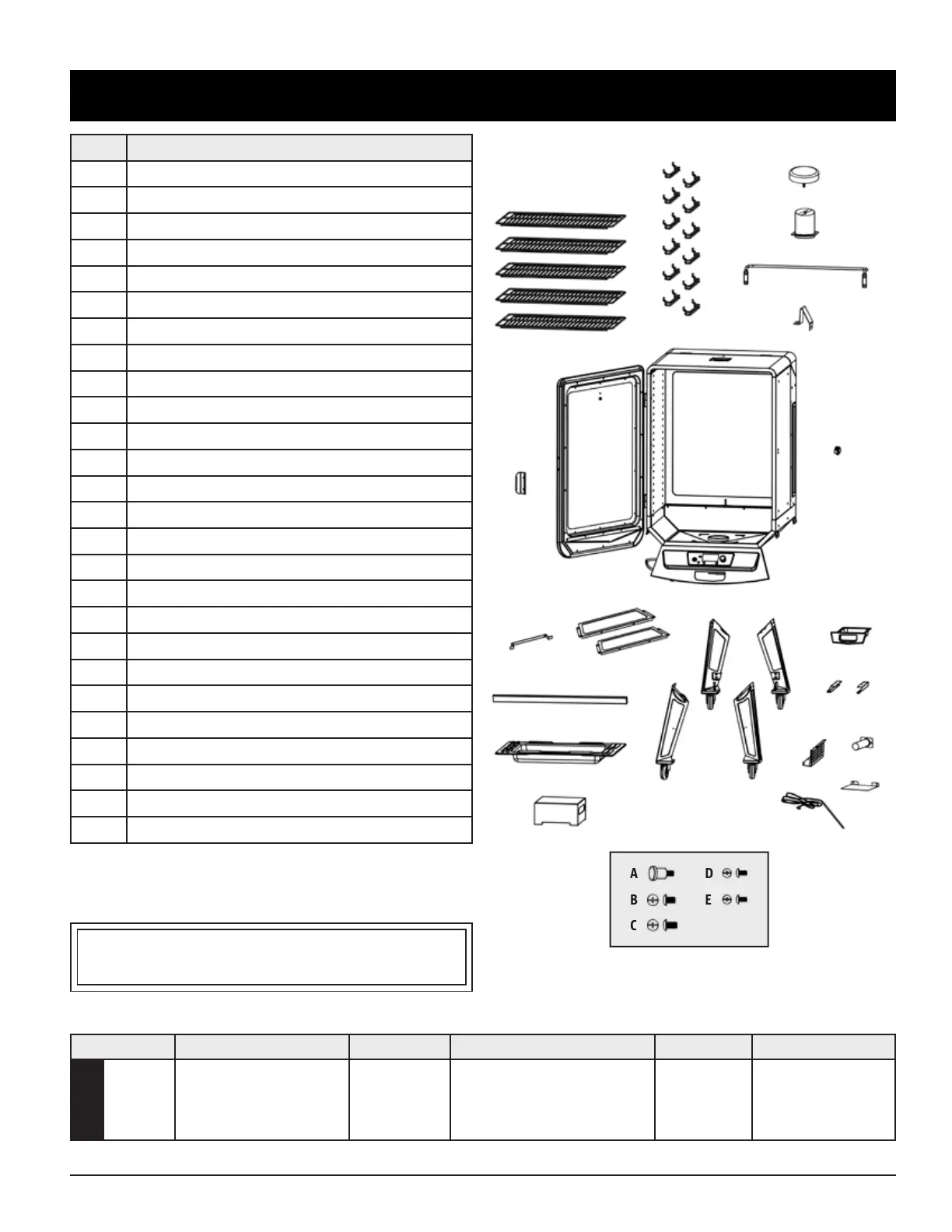 NOTE: Due to ongoing product development, parts are subject to change