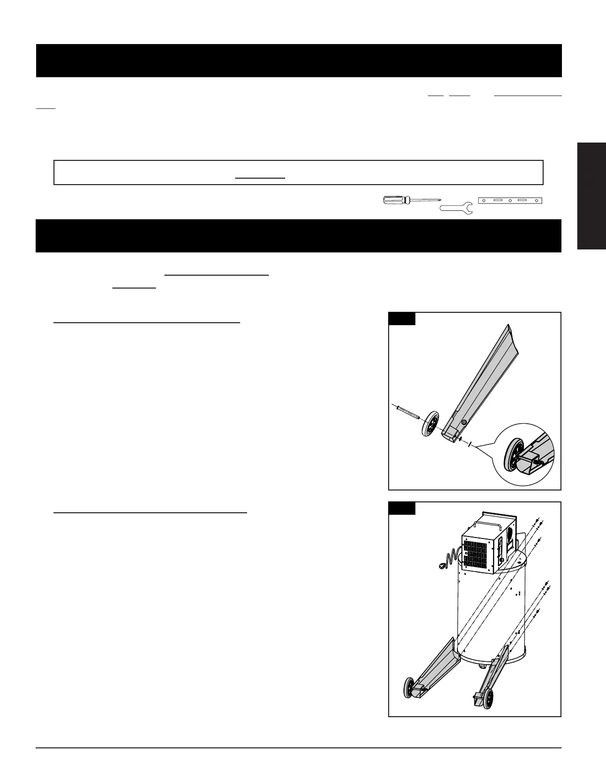 • Repeat installation for the other wheel and support leg.