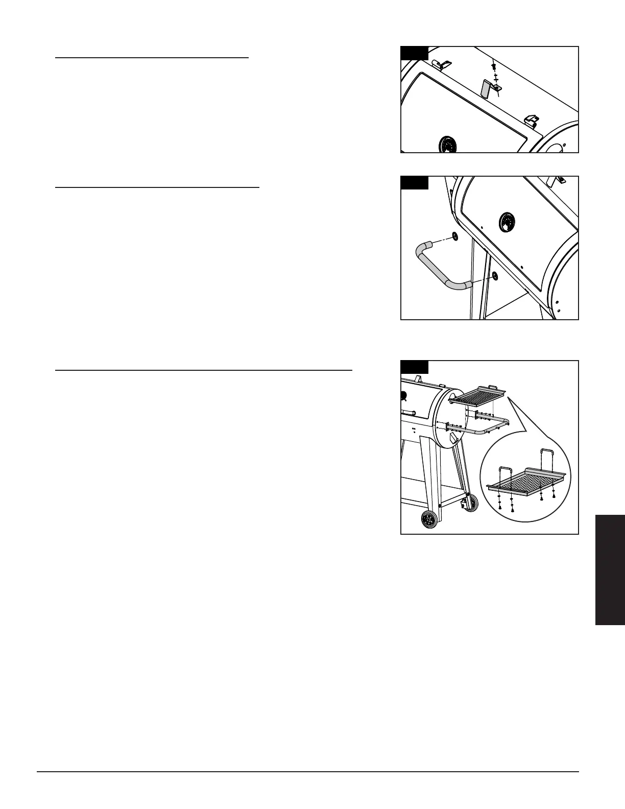 el asador. El peso de la unidad hará que el marco de la repisa lateral se