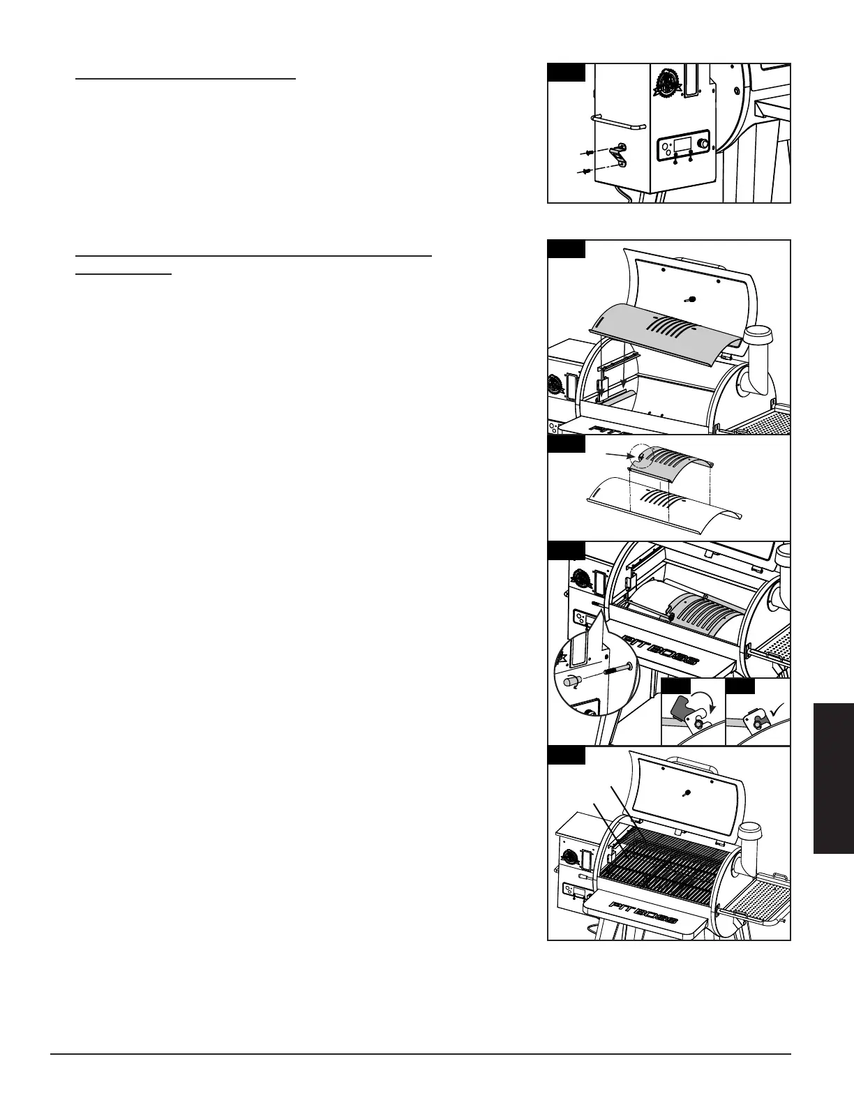 • Coloque las parrillas lado a lado en el borde que está dentro del asador