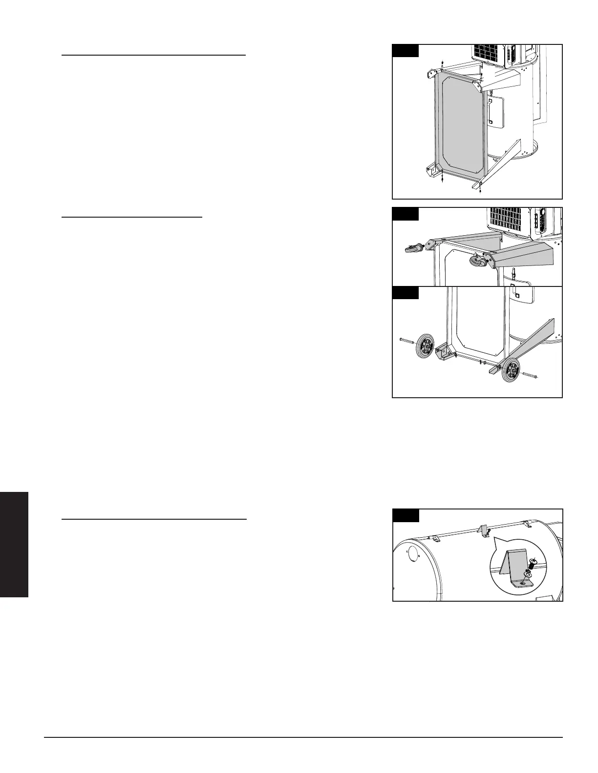 • Conecte cada rueda a cada pata de soporte derecha insertando el