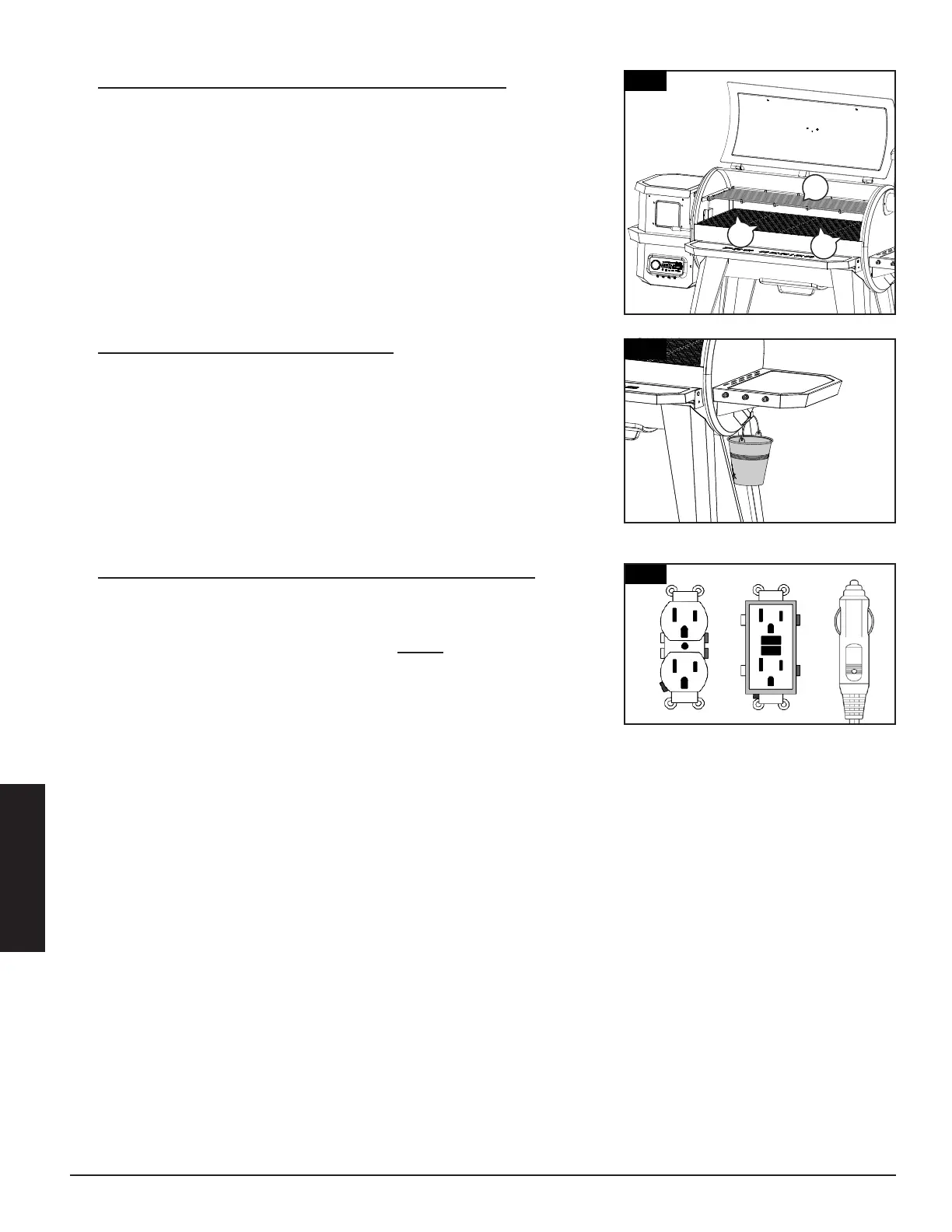• Coloque las parrillas lado a lado en el borde que está dentro del asador