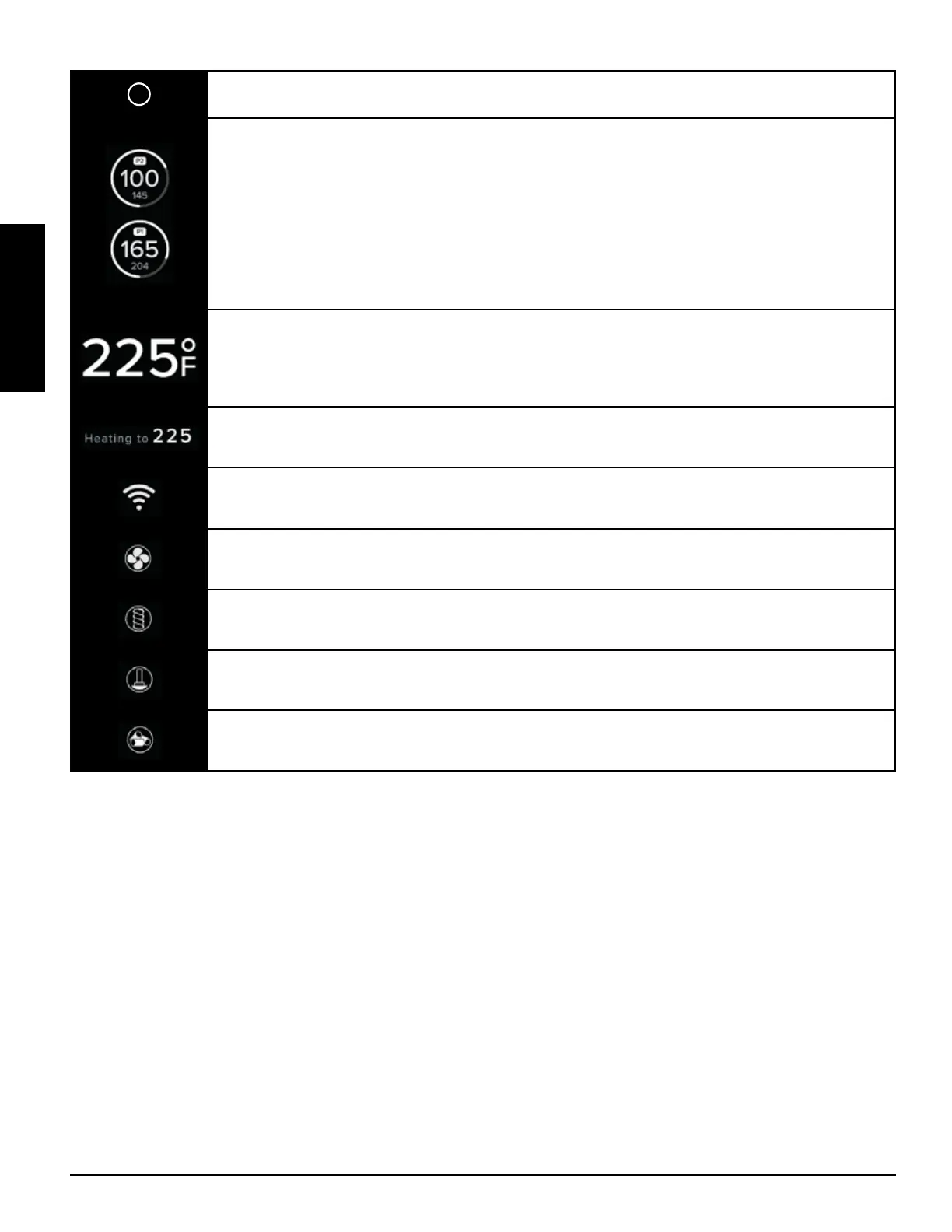 The WI-FI icon is visible when the unit is connected to the Pit Boss application. It will blink when it is
