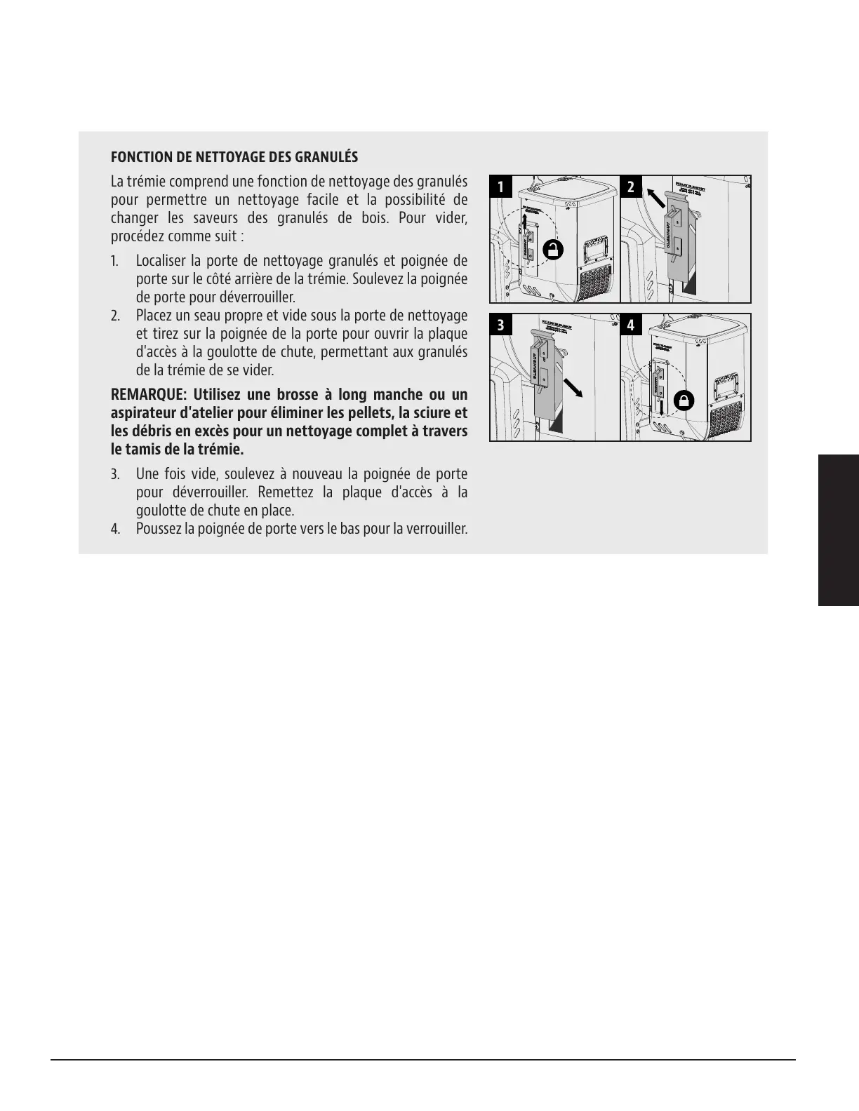 1. Localiser la porte de nettoyage granulés et poignée de