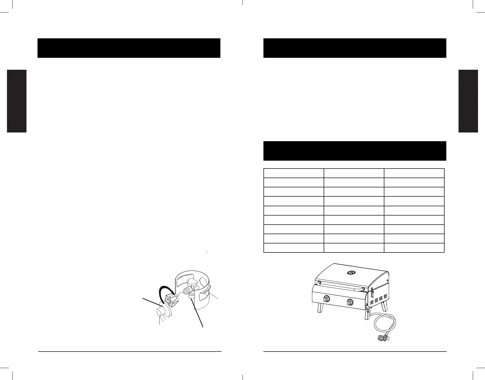• Place the propane tank on the ground immediately adjacent to the tabletop, no