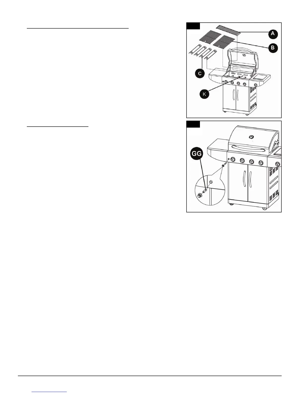 grill head (K) side panels. Note the illustration.